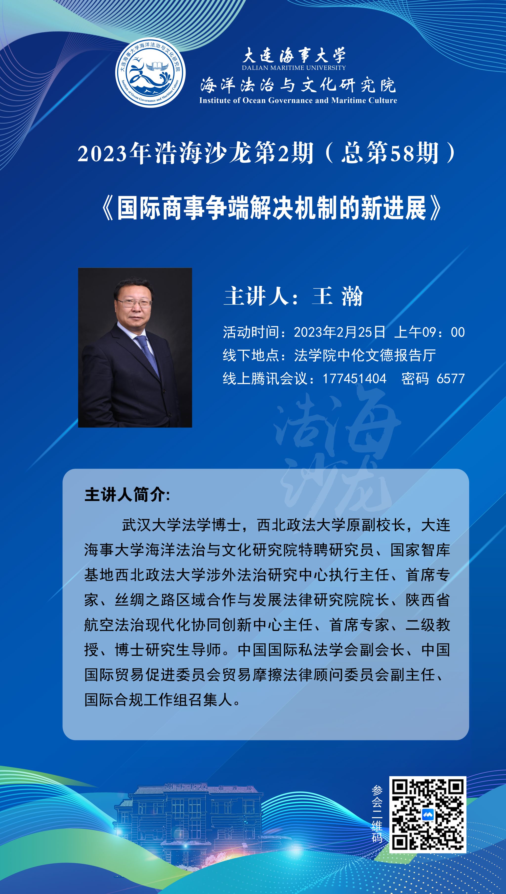 武汉大学法学博士,西北政法大学原副校长,Beat365唯一官方网站海洋法治与文化研究院特聘研究员、国家智库基地西北政法大学涉外法治研究中心执行主任、首席专家、丝绸之路区域合作与发展法律研究院院长、陕西省航空法治现代化协同创新中心主任、首席专家、二级教授、博士研究生导师。中国国际私法学会副会长、中国国际贸易促进委员会贸易摩擦法律顾问委员会副主任、国际合规工作组召集人。