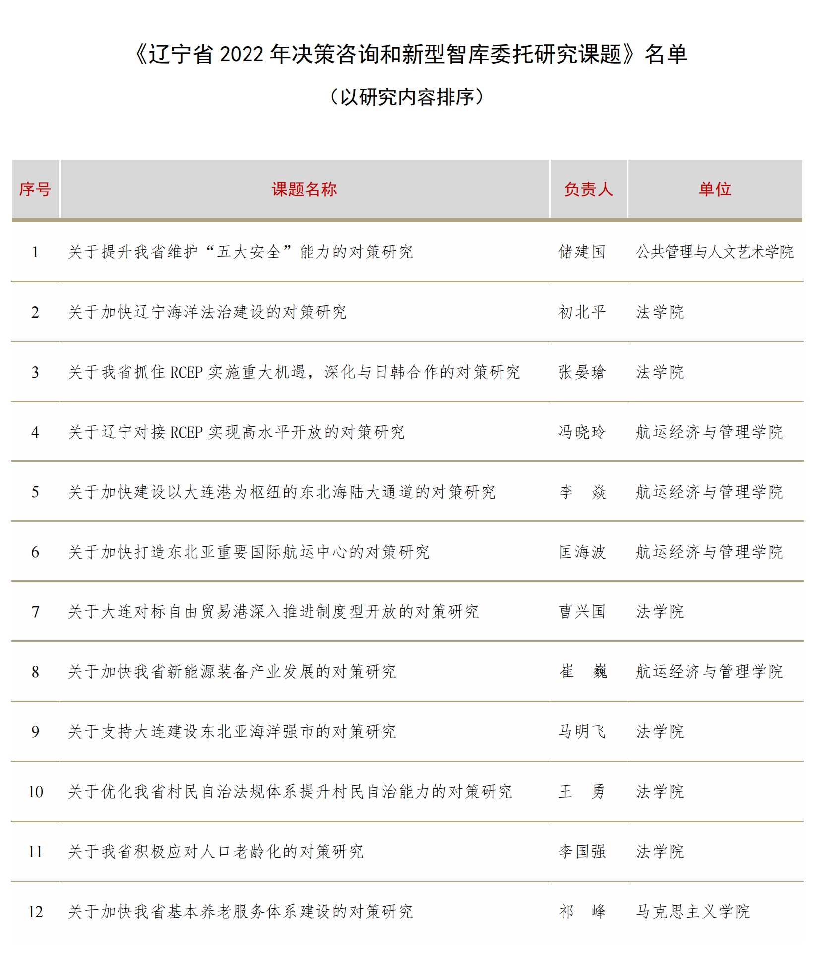 近日,省委、省政府决策咨询委员会公布《辽宁省2022年决策咨询和新型智库委托研究课题》(以下简称委托研究课题)名单。经省委、省政府决策咨询委员会办公室认真研究,最终确定Beat365入选委托研究课题12项,入选数量位列省内高校第2位。