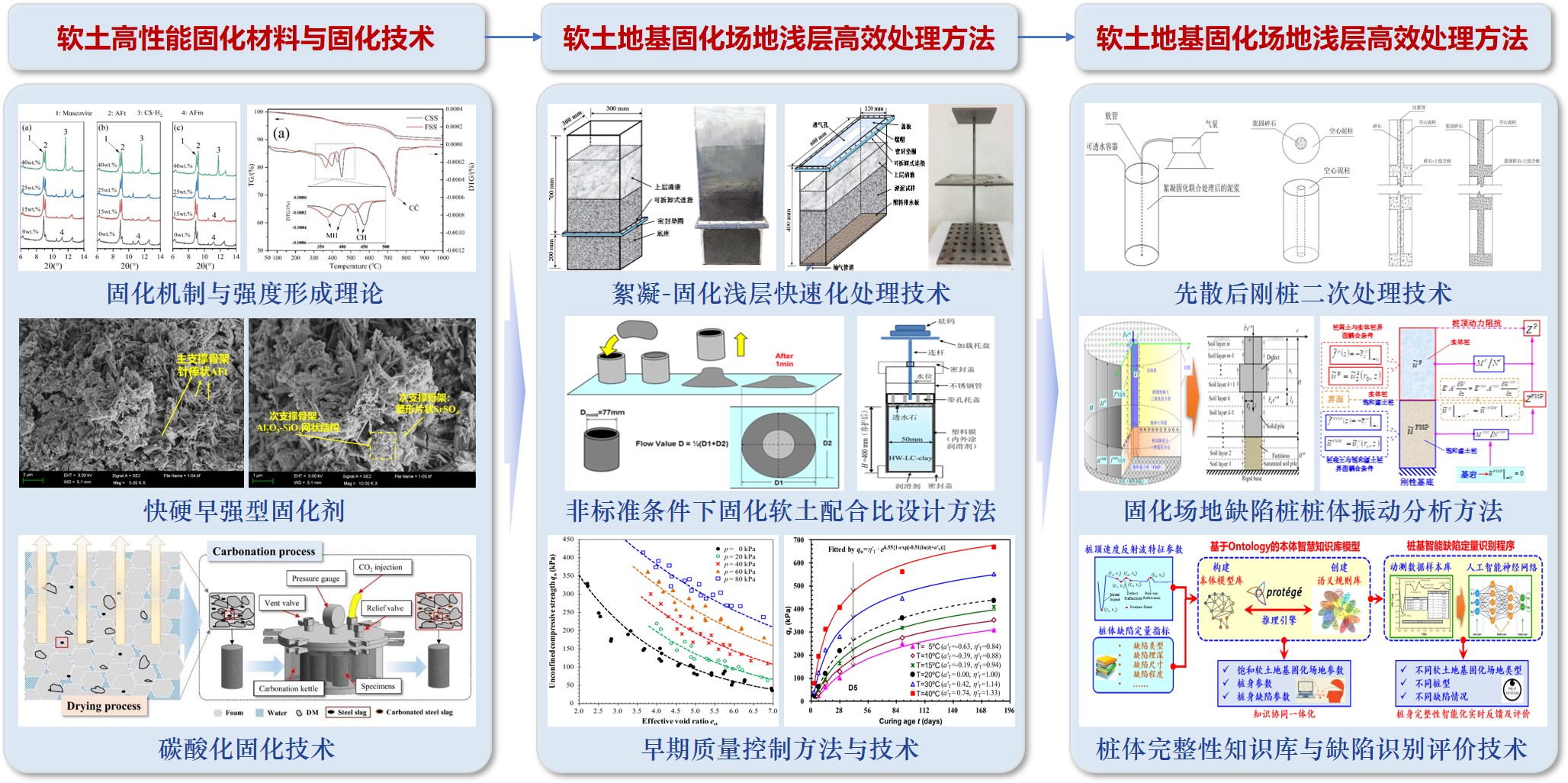 “软土地基场地稳定加固成套关键技术与应用”成果针对我国在软土场地处理方面的重大需求,基于研发的高性能固化材料、场地高效固化处理方法、深层加固及桩体评价技术,实现了软土高性能快速化学固化及软土地基场地高效稳定加固。该成果授权发明专利11项、实用新型4项,登记软件著作权3项,发表SCI/EI检索论文22篇,出版专著2部。相关成果是“新技术、新材料、新工艺”在航道建设和维护体系中的探索与尝试,并取得了显著的经济效益。