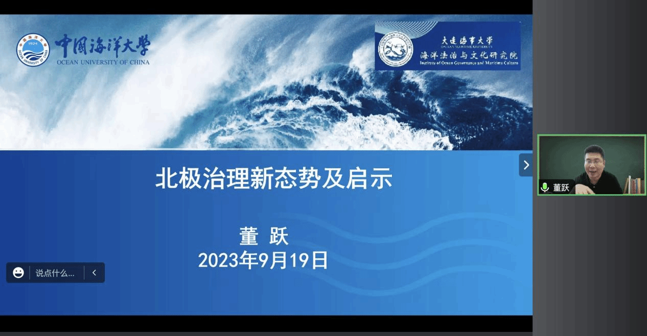 2023年9月19日下午,Beat365本年度第14期(总第70期)浩海沙龙于线上成功开展,此次浩海沙龙的主题为“北极治理新态势及其启示”。此次会议由“浩海工程”培养人选韩立新教授担任主持人,由中国海洋大学法学院副院长、博士生导师董跃教授担任主讲人。