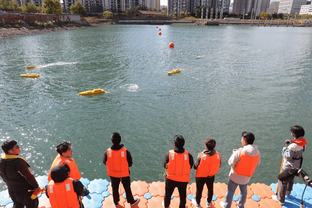 据悉,来自全国20余家单位的52支队伍参加了此次比赛活动,线上赛事与线下赛事同步举行。本次大赛共设置了智能无人艇搜救创意设计、无人艇编队水面目标物快速自主救援、无人艇水面动态目标搜救、无人艇搜寻探测水下目标等四个科目,重点围绕无人艇搜救概念设计,重点考察无人艇(编队)自主航行算法控制、无人艇动态救助及目标探寻能力。