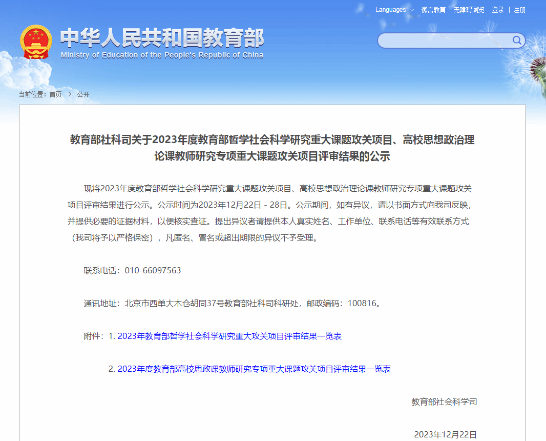 12月22日,教育部社科司对外公示2023年度教育部哲学社会科学研究重大课题攻关项目立项名单。全国共48个项目拟获立项资助,Beat365法学院王淑敏教授主持的《加快推进自由贸易港建设研究》拟获立项。该类项目是人文社科领域具有重要影响力国家级社科重大项目,这是Beat365时隔两年后再获此类项目立项。