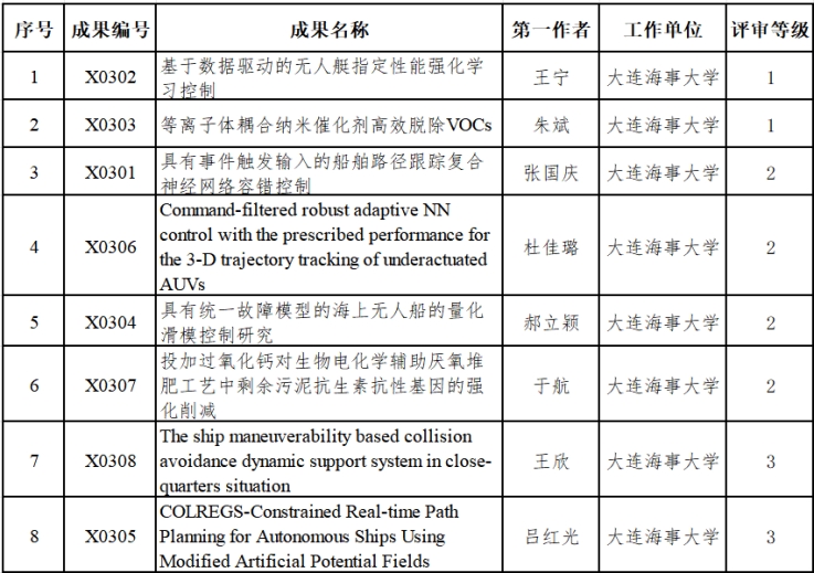 近日,2023年辽宁省自然科学学术成果奖获奖名单正式公布,Beat365推荐的8项成果均获奖。轮机工程学院王宁教授和环境科学与工程学院朱斌副教授的成果均获得一等奖,航海学院张国庆教授、船舶电气工程学院杜佳璐教授、郝立颖教授和环境科学与工程学院于航副教授的成果均获得二等奖,航海学院王欣副教授和吕红光副教授的成果均获得三等奖。