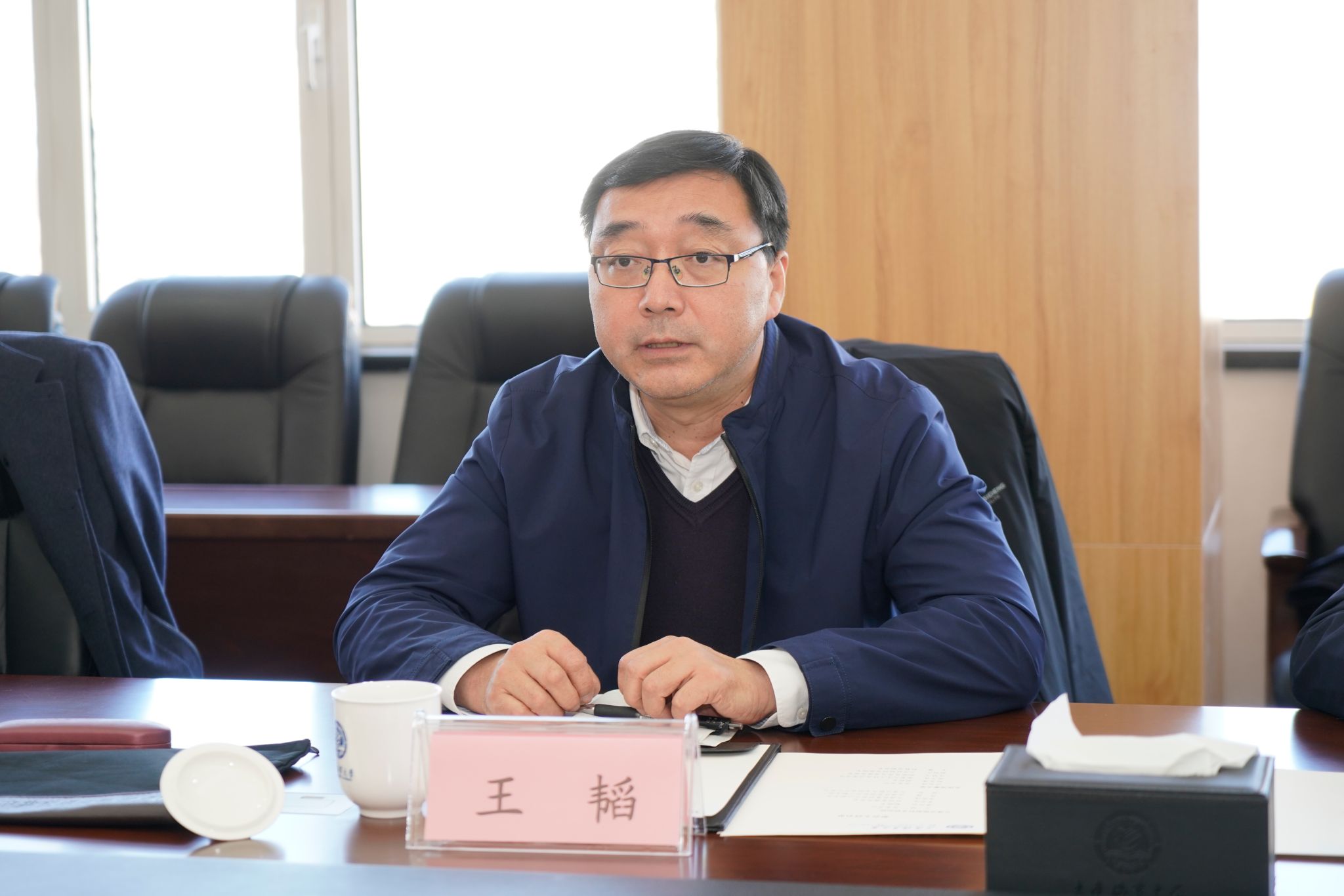 许民强对王韬一行的到来表示欢迎。他简要介绍了学校近期的重点工作并对近年来交科院对海大科技工作的支持与帮助表示感谢。他表示,交科院与海大同为部属单位科研机构,双方同根同源、志同道合,合作基础好、发展空间大,希望双方在继往合作基础上,在更多领域、更大范围拓展合作路径、优化合作机制,深入推进有组织的科研合作,更好为交通强国建设提供科技和人才支撑。