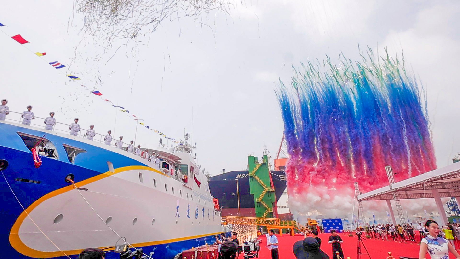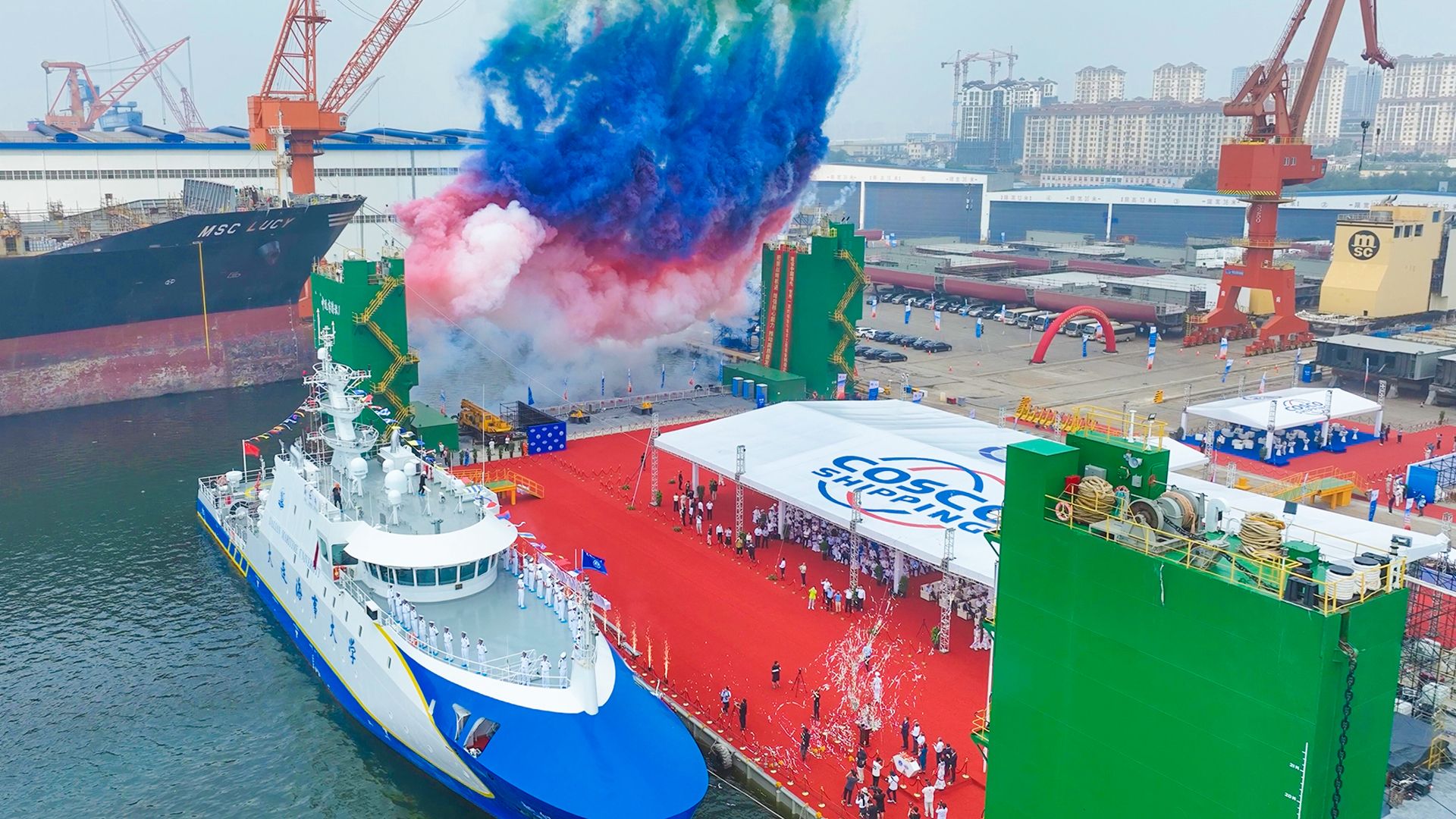 7月8日,全球首艘集智能研究与教学实训于一体的智能研究与实训两用船(以下简称“两用船”)“新红专”轮交付命名仪式在辽宁大连举行。