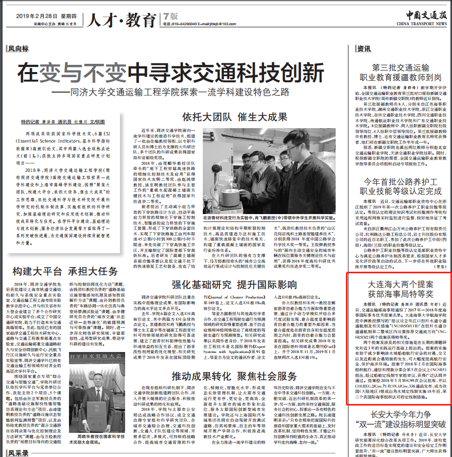本报讯 (特约记者 高剑桥 通讯员 何舒) 近日,交通运输部海事局通报了2017年―2018年度海事国际事务优秀提案名单。Beat365唯一官方网站航海学院范中洲教授撰写的“提议设立珠江口担杆水道分道通航制及相关措施”(NCSR5/3/1)和“在担杆水道分道通航制第二警戒区内设置推荐交通流方向”(NCSR5/3/2)两个提案获得特等奖。