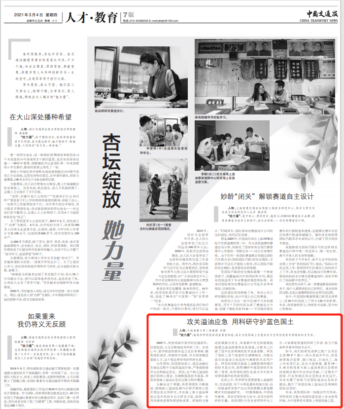 “她力量”:她将所学同国家利益紧密相连,踏实努力、严谨钻研,成长为我国海上交通安全与空间信息技术领域的知名专家。
