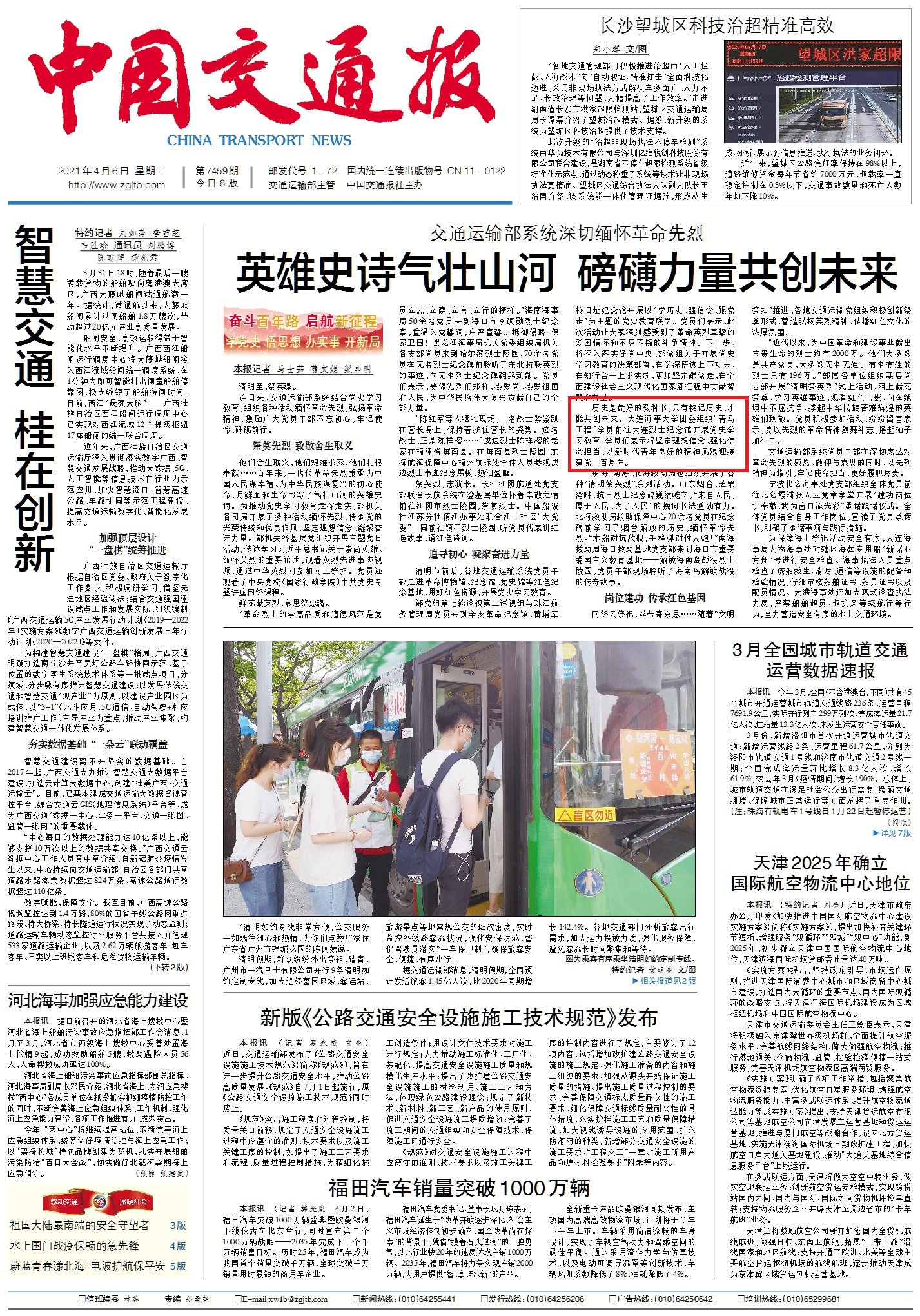 【中国交通报头版】交通运输部系统深切缅怀革命先烈 英雄史诗气壮山河 磅礴力量共创未来