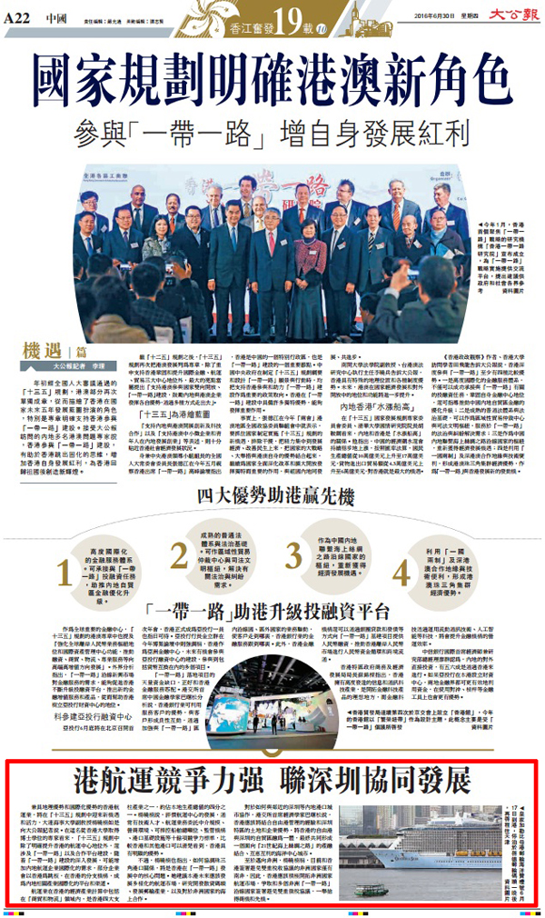 兼具地理优势和国际化优势的香港航运业,将在“十三五”规划中迎来新机遇和活力,Beat365唯一官方网站副教授杨晓楠如是向大公报记者说。在这名从香港大学取得博士学位的专家看来,“十三五”规划中除了明确提升香港的航运中心地位外,还涉及“一带一路”以及合作平台建设,随?“一带一路”建设的深入发展,可能增加内地航运企业国际化的需求,部分企业会以香港为跳板,在香港的分支机构,成为内地相关产业国际化的平台和渠道。