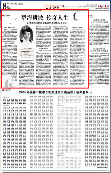 学院教务处让她填一张表格,在学习专业一栏里,她写上“船舶驾驶”4个字。“驾驶专业不招女生。”教务处的同志说,“你改报轮机专业吧。”“为什么不招女生?这不是轻视女同志吧?”王亚夫对这种性别歧视开始了本能的反抗,偏要报驾驶专业。