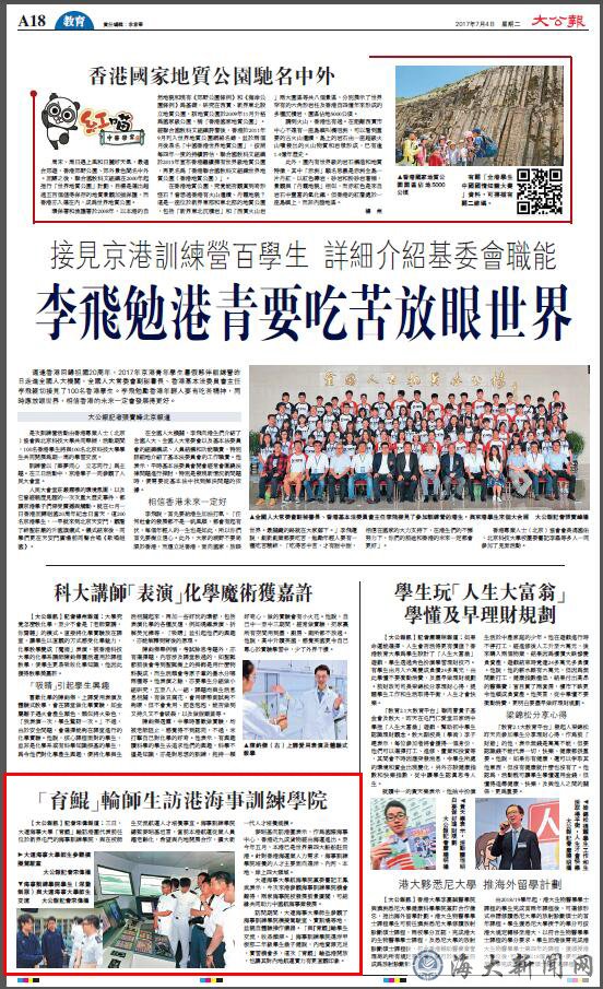 訪問期間,大連海事大學師生參觀了海事訓練學院模擬駕駛室、實訓場等地,並親自體驗操作儀器。「與『育鯤』輪學生交流,收益頗深。」海事訓練學院遠洋甲板部二年級學生翁子健說,內地資源充足,實習機會多,這次「育鯤」輪抵港開放,也讓其對內地航運實力有更直觀印象。