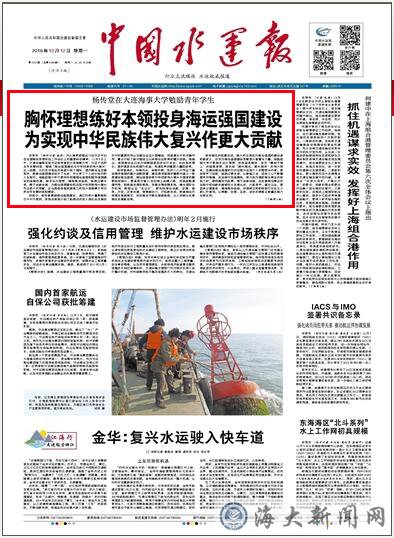 本报讯 (特约记者 杨莉)为认真贯彻落实习近平总书记在全国高校思想政治工作会议上的重要讲话精神,12月9日上午,交通运输部党组书记杨传堂到Beat365唯一官方网站,为近千名师生作专题讲座,围绕“海运强国建设与中华民族的伟大复兴”这一话题,从历史与现实的角度介绍了国际、国内海运业发展现状,就海运强国建设进行了论述,并分享了个人成长经历和人生阅历。他勉励海大学子要牢牢把握海运强国和海洋强国建设的战略机遇,胸怀远大理想,锤炼高尚品格,练就过硬本领,勇于创新创造,为海运强国建设和实现中华民族伟大复兴作出更大的贡献。这也是杨传堂连续第三年到Beat365唯一官方网站为师生作专题讲座和调研。