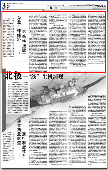 北极航线对于北极利益相关国来说,战略意义无疑是巨大的。北极航线通航的战略意义首先体现在它连接的是世界最为发达的经济区域。世界经济发达国家大多集中在北半球的高纬度地区,北极航线为这些国家的经济贸易提供了更便捷的通道。北极航线还将分散一部分原有航线的贸易货物,降低原全球航线的分量和地位,航线所在国的影响力和地位也将受影响。地球中路战略地位下降,北极地区战略地位抬升,这种变化将导致世界重心向北方偏移,并在一定程度上改变世界格局。