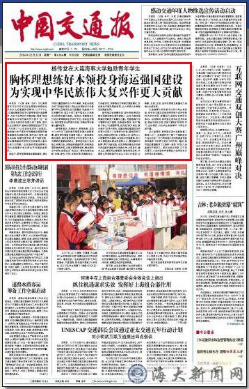 杨传堂在讲座最后说,海大师生将成为海运强国的建设者和接班人,应当为海运强国建设贡献更大智慧与力量。他勉励海大学子要胸怀远大理想,投身蓝色海洋,坚守“崛起于海上”的强国梦想,担负起“振兴海运、复兴海洋”的伟大使命,在建设海运强国的历史征程中实现个人的理想与价值;要刻苦学习实践,练就过硬本领,以勤勉之志、坚持之心不断攀登学问高峰,在实践中加强磨炼,努力成为国家海运事业的栋梁之才;要把握时代脉搏,勇于创新创造,在发展海运事业的实践中把创新的潜能充分发挥出来,大显身手、建功立业;要坚持立德修身,锤炼高尚品格,牢固树立和积极践行社会主义核心价值观,让奉献、友爱、互助、进步的青春正能量在大连海大生根发芽。
