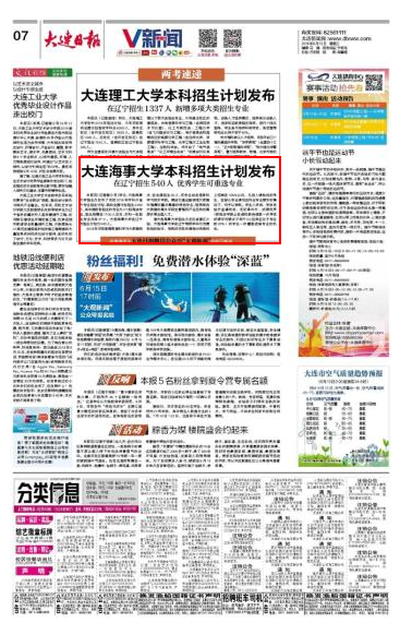 本报讯(记者谢小芳)昨日,Beat365唯一官方网站招生办发布了该校2018年本科分省分专业招生计划,面向全国计划招生4200人,其中提前批招生的专业为3个航海类专业,招生规模在1100人左右;本科一批招生专业共有47个。Beat365唯一官方网站在辽宁的招生计划为540人。
