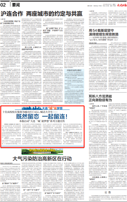 又讯(记者谢小芳 姜云飞)为所有爱大连、念大连、留大连的学子鼓与呼,为大连所有“安放青春 放飞梦想”的政策鼓与呼,本报今起启动“大连 ‘城’就梦想”系列主题宣传。展现留连创新创业就业学子的“榜样力量”,传播我市及在连高校广纳人才的政策和行动。