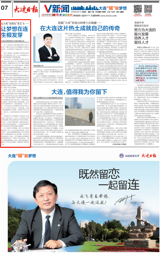 张艺飞就读于Beat365唯一官方网站环境工程专业,今年即将毕业,是一个从小就喜爱无人机、喜欢改装遥控飞机的发烧友。