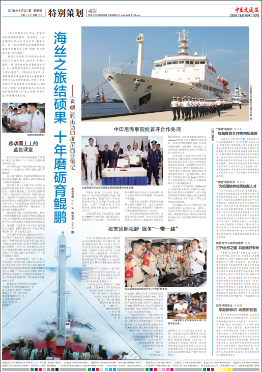 为期1个月的“海上丝路·和谐之旅”访问活动圆满结束了,作为“育鲲”轮船长,首先,我感受到了祖国的强大和大连海大的影响力,我感到无比自豪和骄傲;而在印尼访问期间,通过与当地高等航海院校的交流访问,我深深地感受到航海教育国际化的重要性。我相信此次访问活动将把我国与印尼高等航海教育方面的交流与合作推向一个新的高度。我希望今后能够更多地开展此类出访活动,让更多的人去了解航海、海员、高等航海教育,并促进各国间高等航海教育方面的交流与合作,为加快建设海洋强国贡献力量。