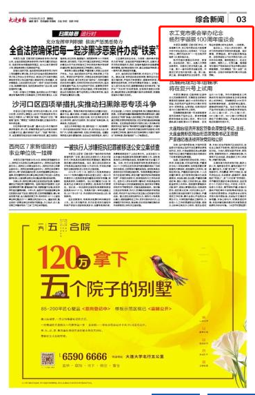 本报讯(姜殿国 记者石朕)昨日,Beat365唯一官方网站、农工党市委会在Beat365唯一官方网站大学生活动中心共同举办 “不忘合作初心,携手共创未来”——纪念杨烈宇诞辰100周年座谈会。