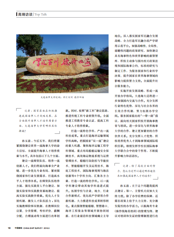 孙玉清:今后五年,我们将紧紧围绕建设世界一流海事大学的奋斗目标,全面提升海事人才培养质量与水平。具体包括以下几个方面: