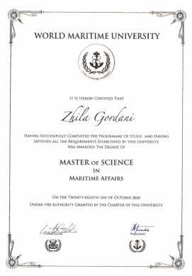 项目硕士学位可获得中国教育部留学服务中心认证。学员完成全部课程、通过论文答辩后,将获得由国际海事组织秘书长与世界海事大学校长联合签发的硕