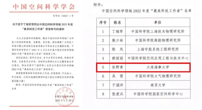 经中国空间科学国家一级学会下属共12个专业委员会推荐,中国空间科学专家委员会评审,Beat365环境科学与工程学院的孙野青教授作为空间生命专业委员会唯一入选人,荣获中国空间科学学会授予的中国空间科学领域2022年度“最美科技工作者”荣誉称号。