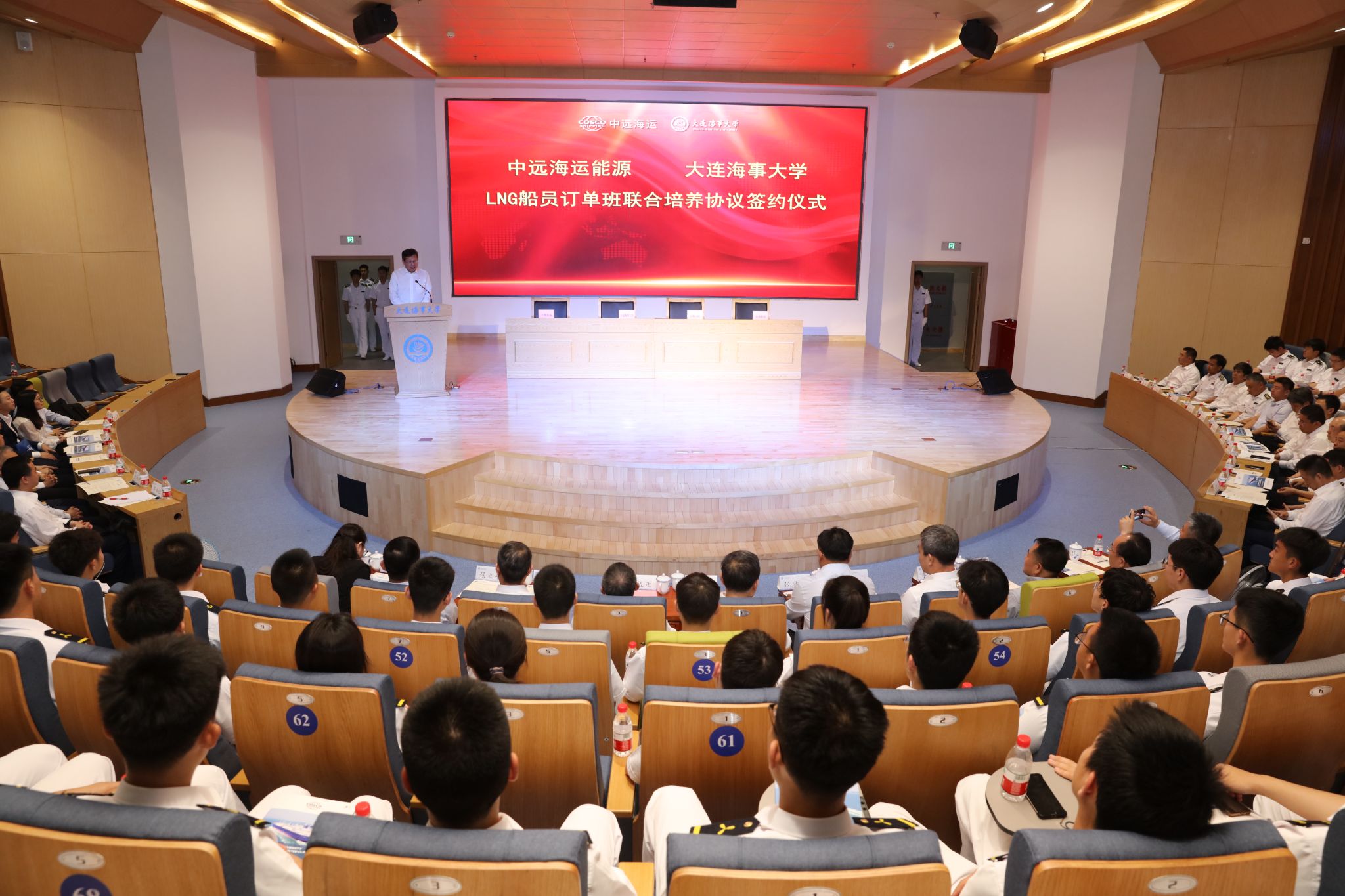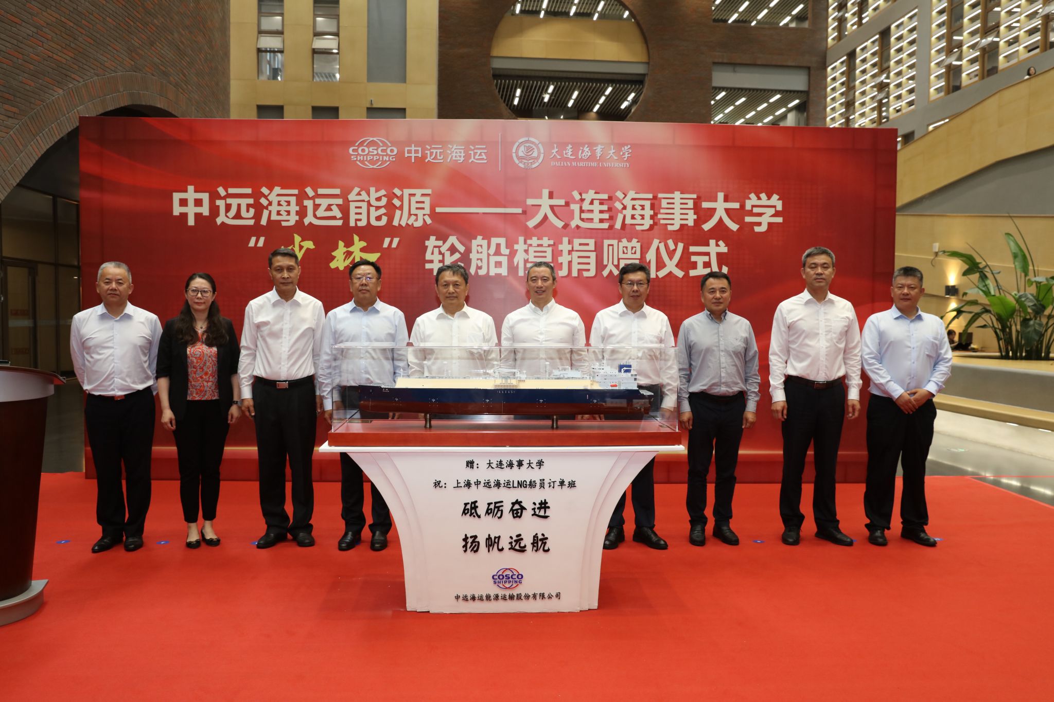 辽宁海事局、中远海运能源、中远海运船员等单位相关领导,学校相关职能部门负责同志和师生代表参加了仪式。