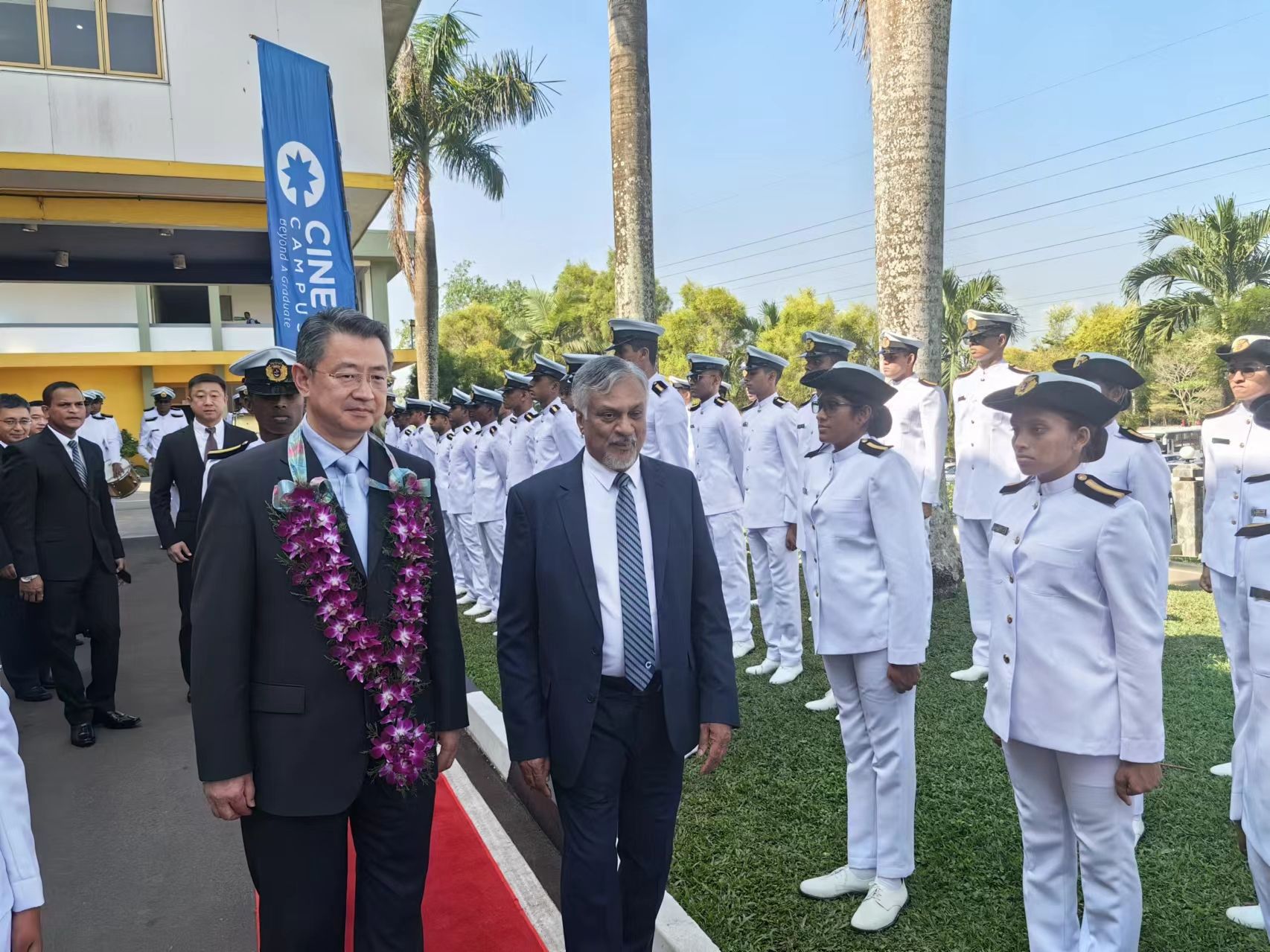 单红军为斯里兰卡校区航海培训教学楼揭牌,种下纪念树,并与斯里兰卡校区管理层就如何进一步推动项目拓展进行了深入交流。