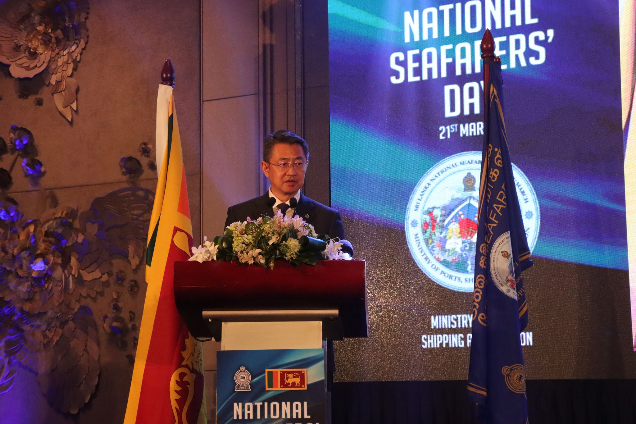 为表彰斯里兰卡海员对全球贸易发展作出的贡献,斯里兰卡政府将3月21日确定为“国家海员日”,并举办了首个“国家海员日”庆祝活动暨国际海事大会。斯里兰卡港口、航运及航空部部长Nimal Siripala De Silva,教育部部长Susil Premajayantha,海军指挥官 Admiral Priyantha Perera, 科伦坡国际航海工程学院校长Ajith Peiris,韩国海洋大学校长Ryoo Dong-keun等出席了活动,校长单红军应邀出席活动并作主旨发言。单红军回顾了Beat365在斯里兰卡科伦坡国际航海工程学院建立海外校区的18年历程,分享了学校在促进区域航运人才培养、文化交流、科技合作等方面取得的积极成果,以及为缓解斯里兰卡及周边国家和地区航运人才需求所作出的积极贡献,他表示,希望继续依托海外校区项目,进一步深化中斯两国在海事教育领域的交流与合作。