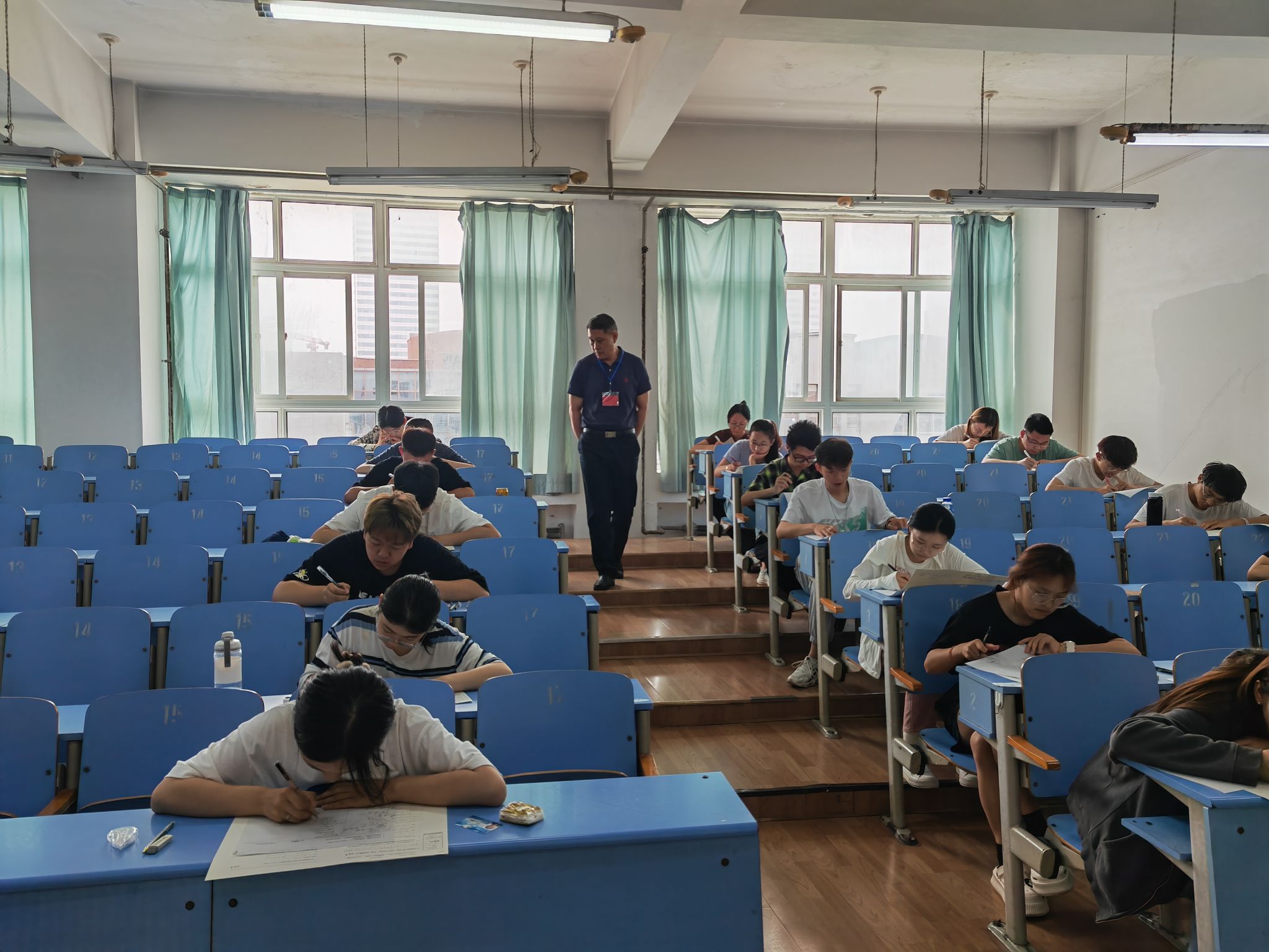 根据学校教学安排,18周为考试周(6月19-25日)。共安排考试科目188个,考场885个,考生32080人次。从整体看,在校、院两级领导的高度重视下,在巡视人员和监考教师共同努力下,全校考场秩序井然,监考教师按时到岗,严格执行考场操作规程;巡视人员认真负责,督导巡查工作到位,维护了考试的公平、公正,营造了良好的考风。
