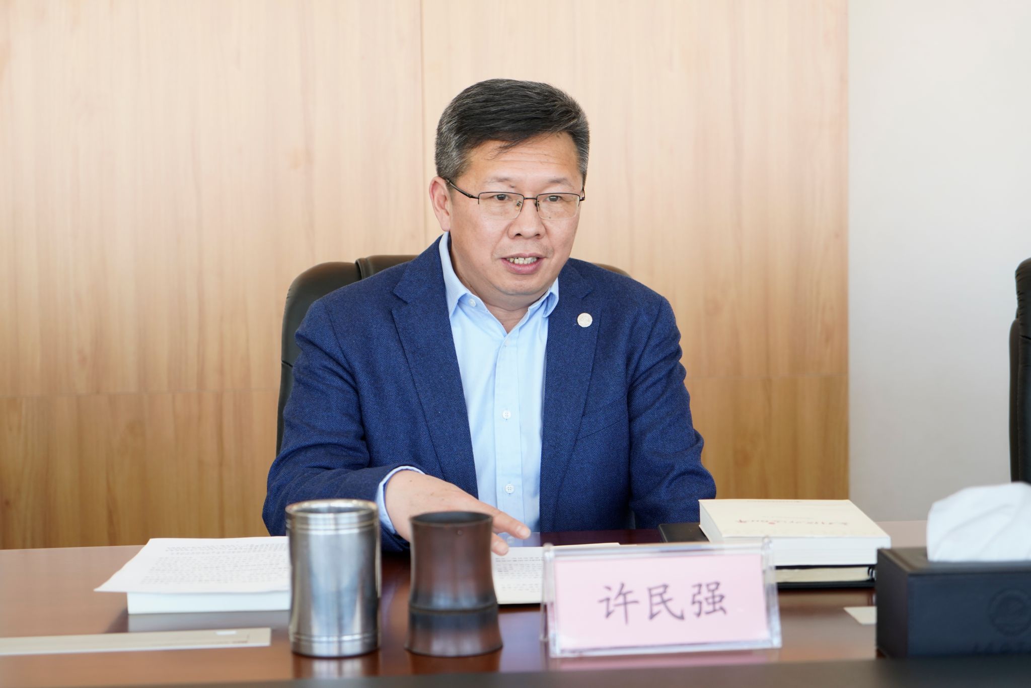 许民强对王韬一行的到来表示欢迎。他简要介绍了学校近期的重点工作并对近年来交科院对海大科技工作的支持与帮助表示感谢。他表示,交科院与海大同为部属单位科研机构,双方同根同源、志同道合,合作基础好、发展空间大,希望双方在继往合作基础上,在更多领域、更大范围拓展合作路径、优化合作机制,深入推进有组织的科研合作,更好为交通强国建设提供科技和人才支撑。