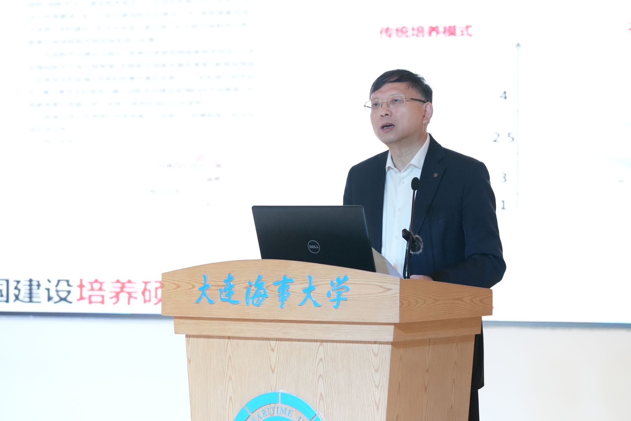大连理工大学校长贾振元围绕《陆海统筹 设施与装备并重 奋力支撑交通强国建设》,介绍了大连理工大学在推进试点任务做深做实方面的主要思路与实践。