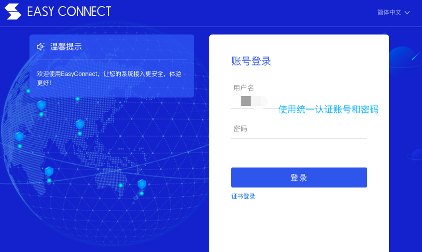 c、使用服务大厅的账号和密码登录,短信码验证后,正常登录后,可以通过浏览器正常访问校内资源。