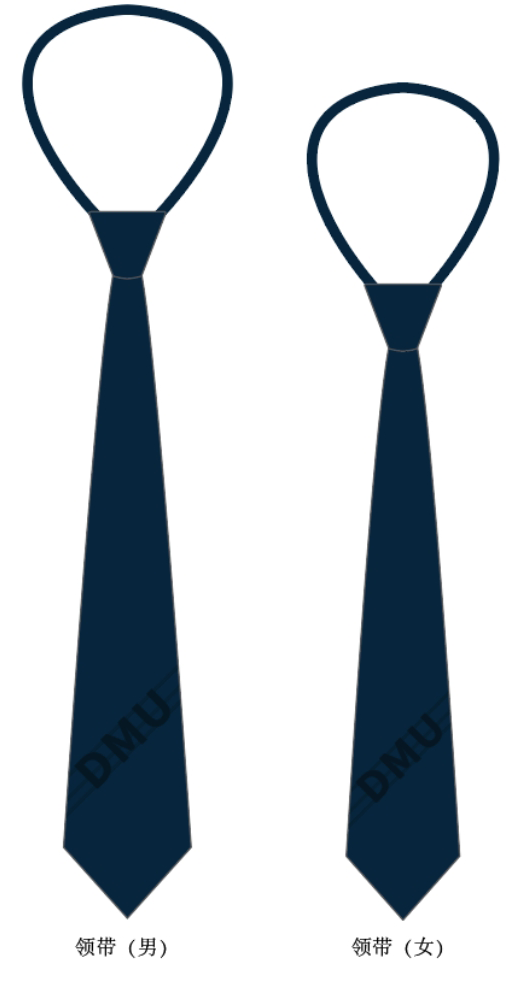 领带印有"DMU"标识,易拉得设计,佩戴方便。