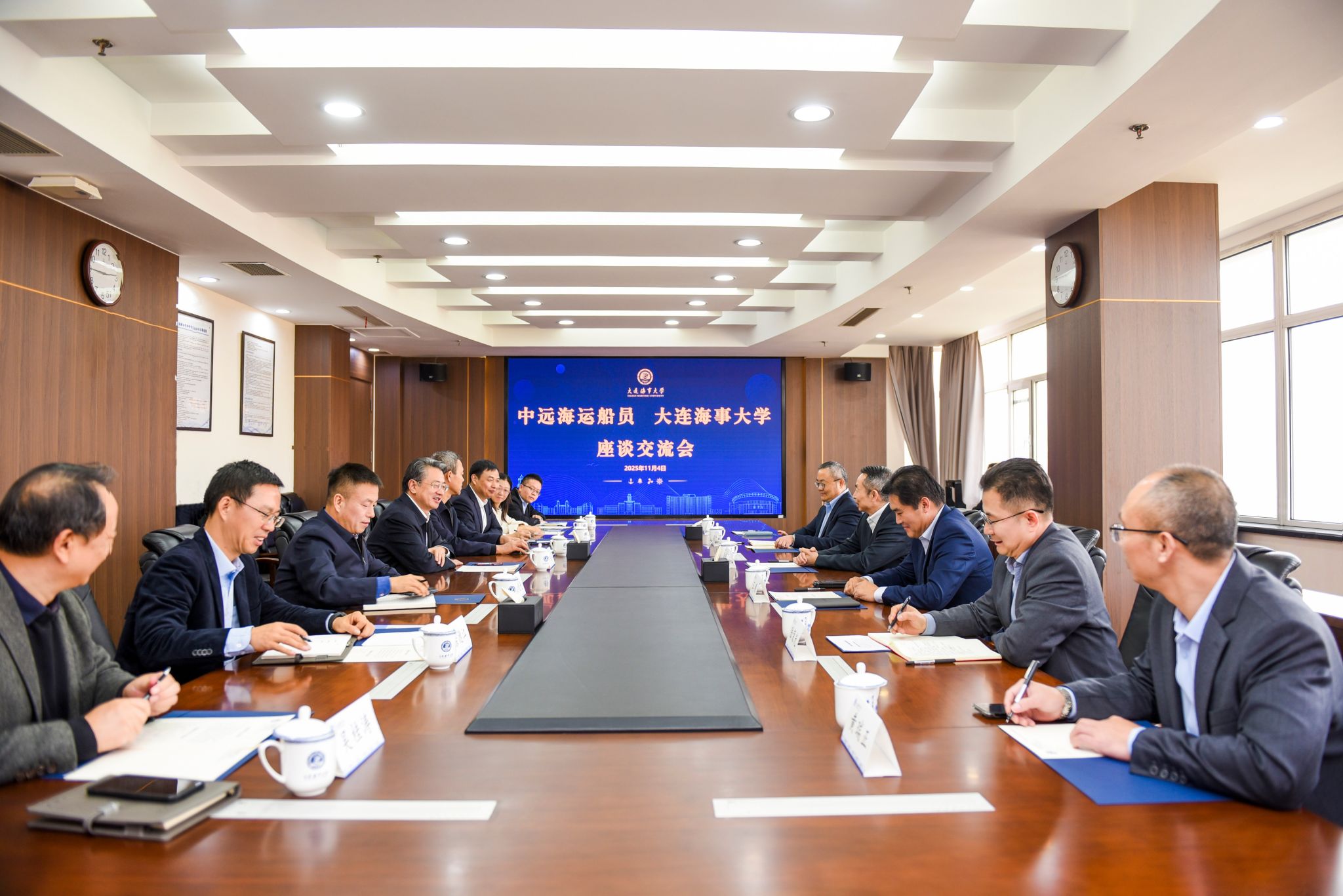 11月4日,中远海运船员管理有限公司董事长、党委书记翁羿、副总经理王刚一行来校调研。校长单红军、副校长赵宝刚参加会见并座谈交流。单红军简要介绍了学校近年来的建设发展情况。他表示,近年来,在中远海运集团大力支持下,学校与中远海运集团各板块公司交流合作广泛,取得较多成果,特别是今年集团与学校成立联合研究院,打造了校企合作新范式。他强调,面向未来,学校愿与中远海运船员公司围绕高素质船员队伍建设、高水平航运人才培养等方面继续深化合作,...
